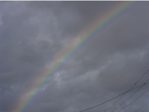 暗い曇り空に架かる虹を発見!思わずシャッターをきりました。