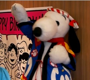 ねじり鉢巻にハッピ姿のスヌーピーの可愛い事、可愛い事。